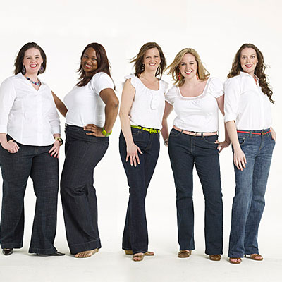 Las temidas caderas anchas y glúteos voluminosos se ven favorecedoras con tops que se ciñan al cuerpo bajo una chaqueta abierta que cubra la zona prominente (superposiciones).